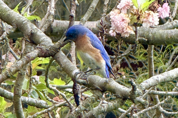 Eastern bluebird. The population of these birds was decimated in the 90s, but thanks to local conservation efforts they have made an amazing comeback and are now plentiful in our region.